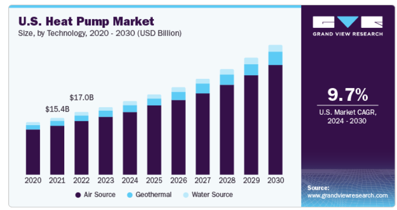 米国のほとんどの地域の土壌温度は、冬は空気より暖かく、夏は涼しい。地中熱源ヒートポンプは、地中の一定温度を利用して建物の冷暖房を行う。環境保護庁(EPA)によると、GHPは住宅、オフィス、学校、病院などの建物の冷暖房に最も費用対効果が高く、環境的にクリーンでエネルギー効率の高いシステムであり、そのため米国では予測期間中にヒートポンプの需要が増加すると見込まれている。