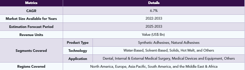 同社は生体適合性、使いやすさ、皮膚への優しさを維持しつつ、強力で信頼性の高い接着性を確保する接着剤の開発に注力しています。したがって、使い捨て製品の需要増加に伴い、メーカーが製品ラインを拡大することで市場が拡大すると予想されます。これらの要因が相まって、世界の医療用接着剤市場は需要が高まっています。