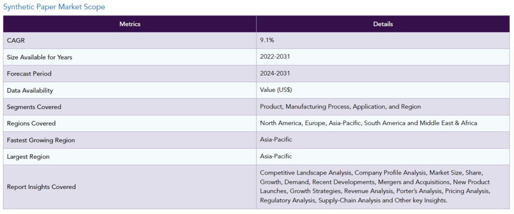 世界の合成紙市場は、製品、製造プロセス、用途、地域によってセグメント化されています。